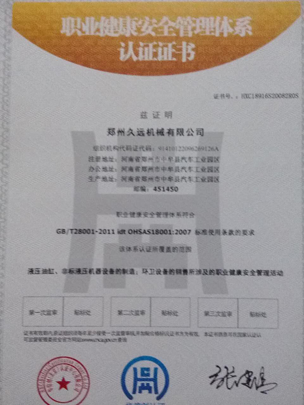 職業(yè)健康安全管理體系認(rèn)證證書